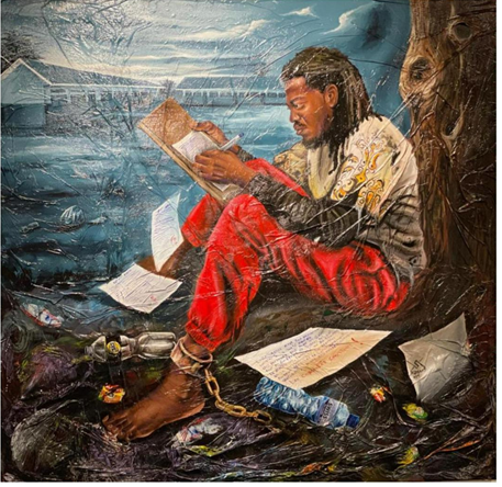 Technique: collage of bags, acrylic and oil on canvas