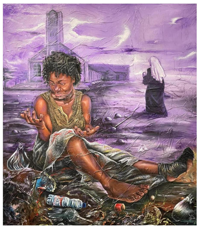 Technique: collage of bags, acrylic and oil on canvas